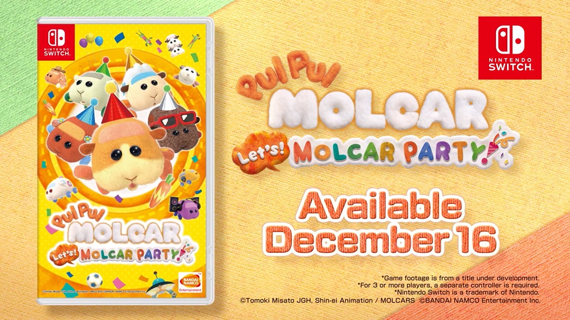 Bandai Namco a annoncé aujourd’hui PUI PUI Molcar Let’s ! Molcar Party !, un party-game pour la Nintendo Switch basé sur la série animée courte japonaise en stop-motion. Une sortie est prévue pour le 16 décembre au Japon et en Asie. Le support de l’anglais a été confirmé pour la sortie asiatique.