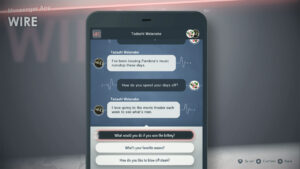 Au-delà de l’interface de combat, c’est l’interface globale du jeu qui est plus clean et nous naviguons dans des menus qui ont leur style. La police d’écriture est également plus grosse et permet même à des éléments comme les Wire et Causality Link de gagner en lisibilité. Le Wire est le système de messagerie téléphonique du jeu et le Causality Link est un gros sociogramme des PNJ toujours bordélique mais plus lisible que le précédent jeu tout de même.