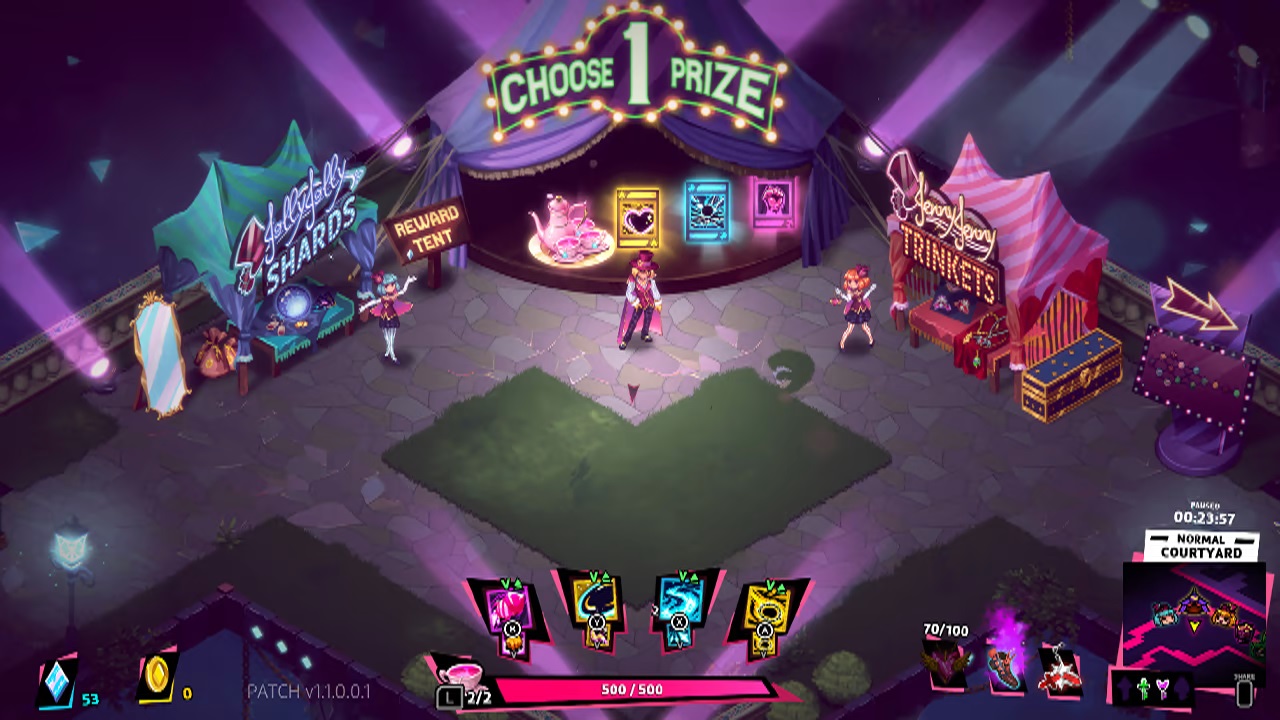 Développé par un petit studio brésilien, Dandy Ace nous propose un jeu qui lorgne sur le GOTY indé de l’année dernière : Hades. Mais avec un postulat un peu différent, vous ne cherchez pas à sortir de l’enfer, mais à sortir d’un miroir magique. Car oui, vous êtes un magicien ! Alors préparez votre plus beau lapin dans votre plus beau chapeau, c’est parti pour Dandy Ace !