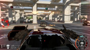 Accessibles dès le départ, nous accueillent deux modes de jeu, « campagne » et « course express ». Concentrons-nous sur ce qui nous intéresse le plus ici, à savoir la campagne, similaire à un mode « histoire ». Enfin si l’on s’en fie au descriptif de l’éditeur, car il n’y a là pas même l’ébauche d’un scénario digne de ce nom. Il s’agit en vérité d’un prétexte pour débloquer les 20 véhicules du jeu, customisables, et leurs 8 armes dédiées, ainsi que d’autres améliorations spécifiques – moteur, freins, etc. Quant à la conduite, elle s’avère satisfaisante, sans non plus atteindre la précision d’une simulation automobile, le titre se voulant très arcade.