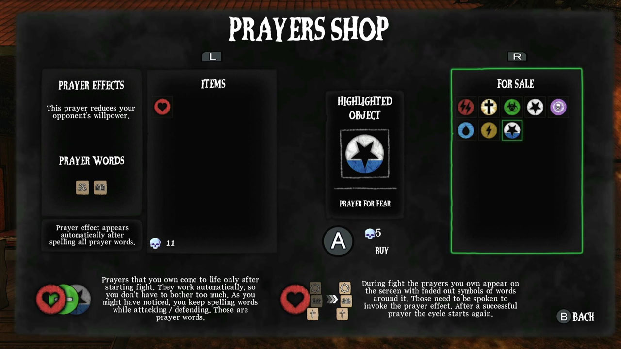 Même si chaque ennemi a sa botte secrète et que le gameplay vaut le coup d’œil en étant original, les combats ont le grand malheur de se ressembler tous, encore plus si vous affrontez le même ennemi après une quinzaine de défaites. Et ce ne sont pas les quelques pouvoirs et potions d’eau bénite qui vont améliorer la donne : c’est toujours la même soupe, à base de sempiternelles attaque/défense. Il est possible de laisser tomber sa Switch de dépit, déprimé par tant de répétitivité décérébrée. Nous ne sommes pas, hélas, gâtés par le reste : une bande son souvent insipide, incapable d’assurer une ambiance autre que bizarre ou à côté de la plaque et des voix (en russe ?) insupportables de répétition durant les combats.