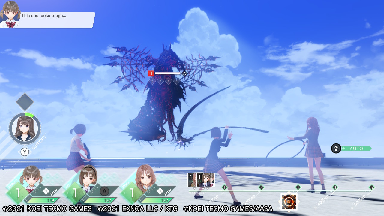 Si comme nous, la particularité typique des RPG à donner des points de magie à vos personnages et les faire consommer afin de lancer des attaques, pour ensuite devoir utiliser des potions en tout genre pour restaurer ces PM vous agacent au plus haut point, sachez qu’ici, vous n’aurez pas besoin de cela. Pour lancer des attaques, il suffira d’attendre que les icônes respectives de vos héroïnes aient assez d’Ether pour lancer vos attaques à volonté. Vous pourrez choisir de contrôler les personnages qui accompagnent Ao, ou tout simplement de les laisser faire comme bon leur semble avec le mode Automatique que vous propose le jeu. Si un combat ne vous intéresse pas ou vous semble trop difficile – en dehors des combats de boss – vous pourrez toujours utiliser le bouton Moins de vos Joy-Con pour échapper à la bataille.