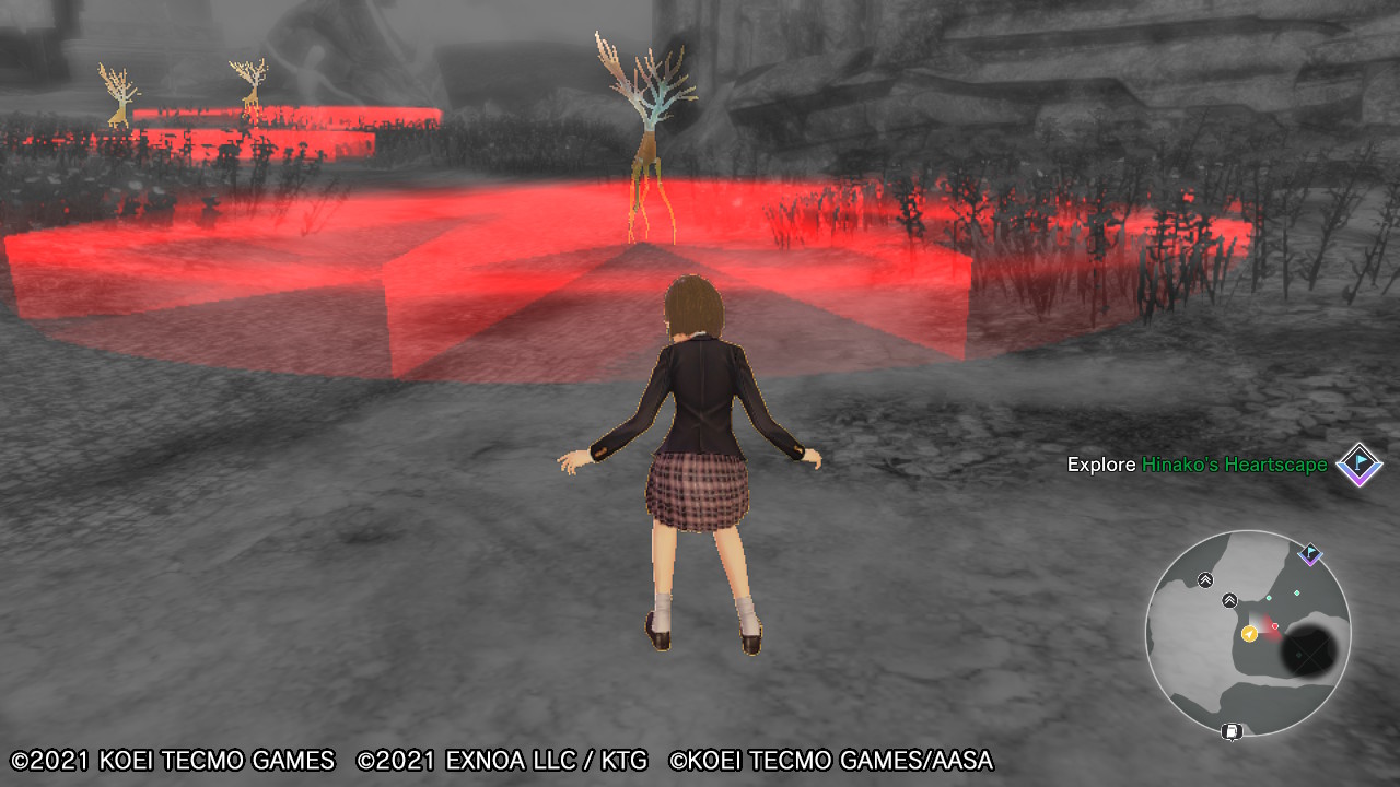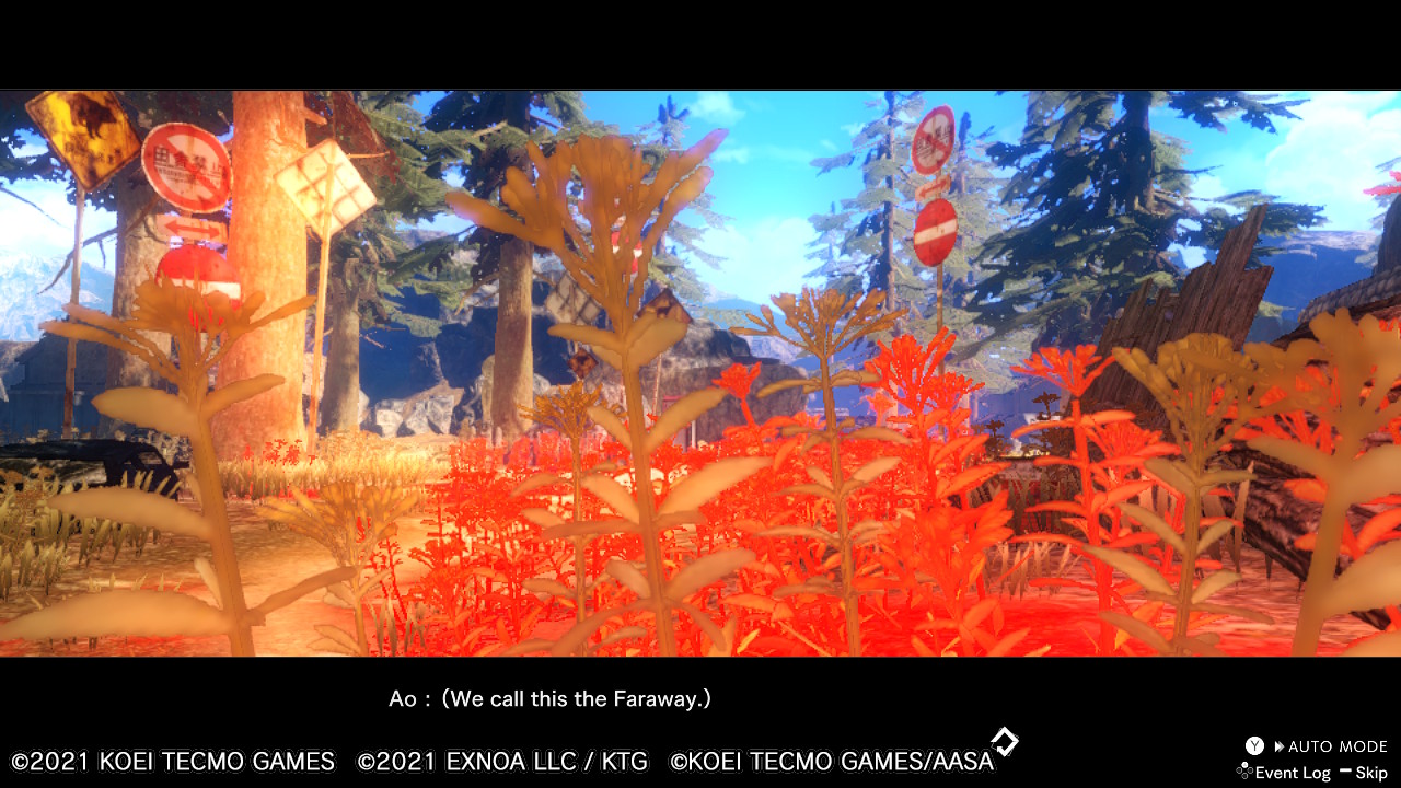Le Faraway, ou littéralement, Le Lointain, que Kokoro a pu mentionner dès le début du prologue, est semblable à l’école dans le sens où il n’y a personne… Du moins, si vous ne vous y aventurez pas trop loin, car en effet, ce monde délabré et dévasté aux apparences automnales est rempli de monstres tous plus dangereux les uns que les autres !