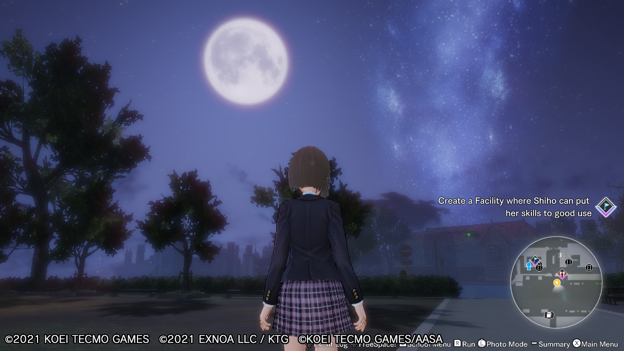 N’oubliez pas que, contrairement à des jeux RPG qui veulent que vous effectuiez une action ou deux par jour avant qu’un chat agaçant ne vous dise d’aller vous coucher obligatoirement pour passer à la journée suivante, Blue Reflection : Second Light se veut beaucoup plus relaxant. De jour comme de nuit, vous pourrez aussi bien explorer le Faraway que d’aller faire du craft, ou tout simplement aller à des rendez-vous avec vos amies. Ces rendez-vous, bien qu’optionnels, sont tout de même à prendre en compte afin de débloquer des capacités spéciales pour vos guerrières. Vous pouvez donc aborder vos journées sans la moindre pression.