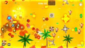 Le jeu se présente donc comme un twin stick shooter nerveux et gore. Les petits lapins diaboliques, diablotins et autres petites joyeusetés malfaisantes, éclatent en gerbes de sang sous nos tirs effrénés. Ici point de fusil à pompe, de mitrailleuse ou lance-grenade, simplement des sortes de boules énergétiques. Sûrement le pouvoir mystique et divin de notre avatar et de notre chat de compagnie. Ben oui, au cours de notre combat contre les forces du mal, nous avons quand même en notre compagnie notre chat qui servira juste à balancer lui aussi des boules énergétiques.
