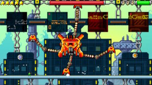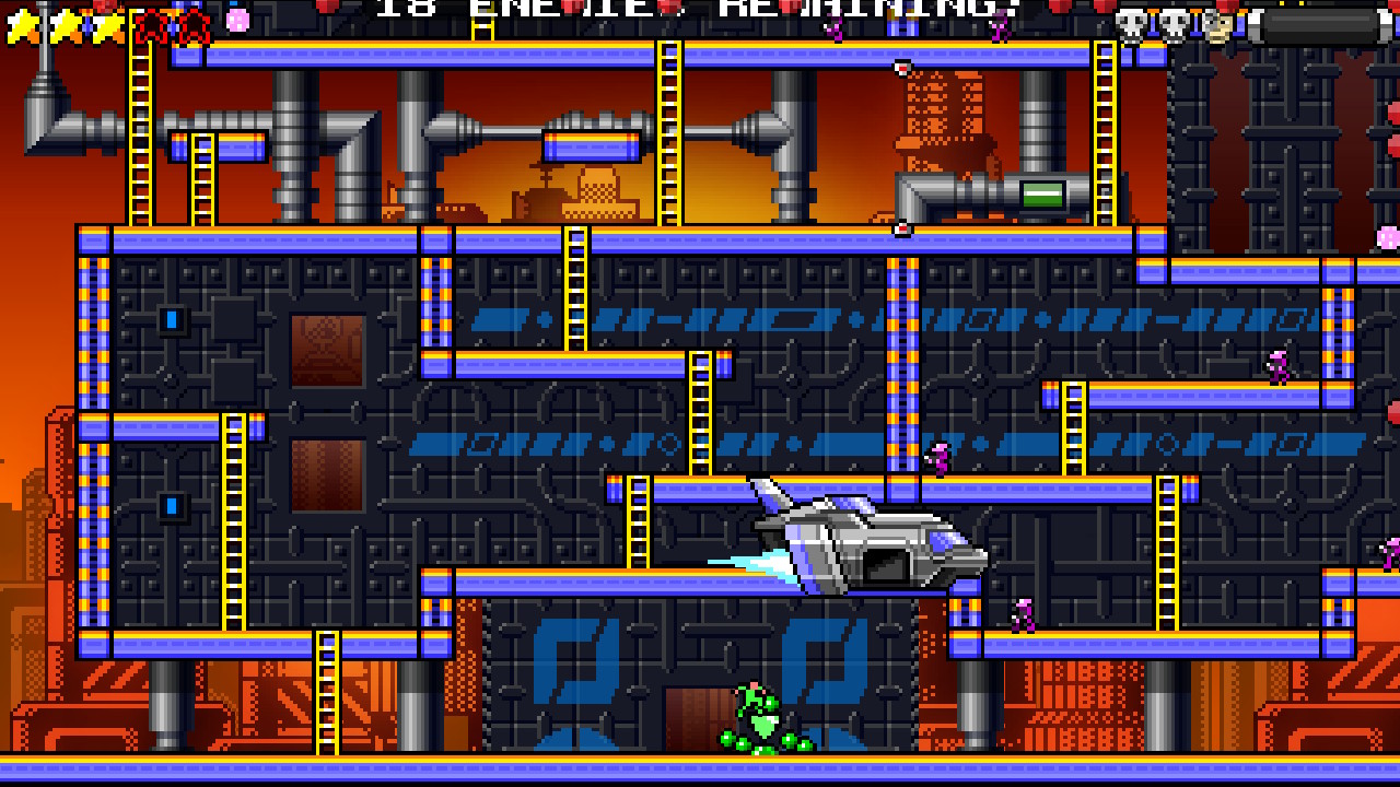 À cela s’ajoutent les différents vaisseaux dans lesquels ils tenteront de mettre fin à notre quête. Bien plus dangereux, il nous sera possible d’en prendre le commandement dans certains niveaux, renouvelant ainsi agréablement le gameplay. Et c’est bien le point fort de la production de Pug Fugly Games, nous ne nous ennuyons jamais. En même temps, il ne nous en laisse pas vraiment le temps.