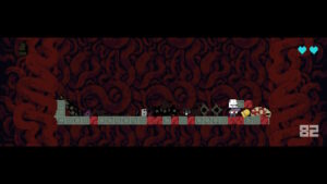 Pour s’échapper de cet endroit, il nous faudra traverser trois zones, chacune avec différents ennemis. Nous nous déplaçons d’étage en étage, commençant par le haut, nous descendons une fois la totalité des ennemis tués. Au dernier étage, nous avons un passage pour la prochaine zone, et nous pouvons choisir une récompense. (Un cœur en plus, une balle en plus, un chapeau différent ou un multiplicateur de score.) Si nous choisissons la balle, elle apparaîtra au sol, notre arme n’étant capable de contenir qu’une seule balle.