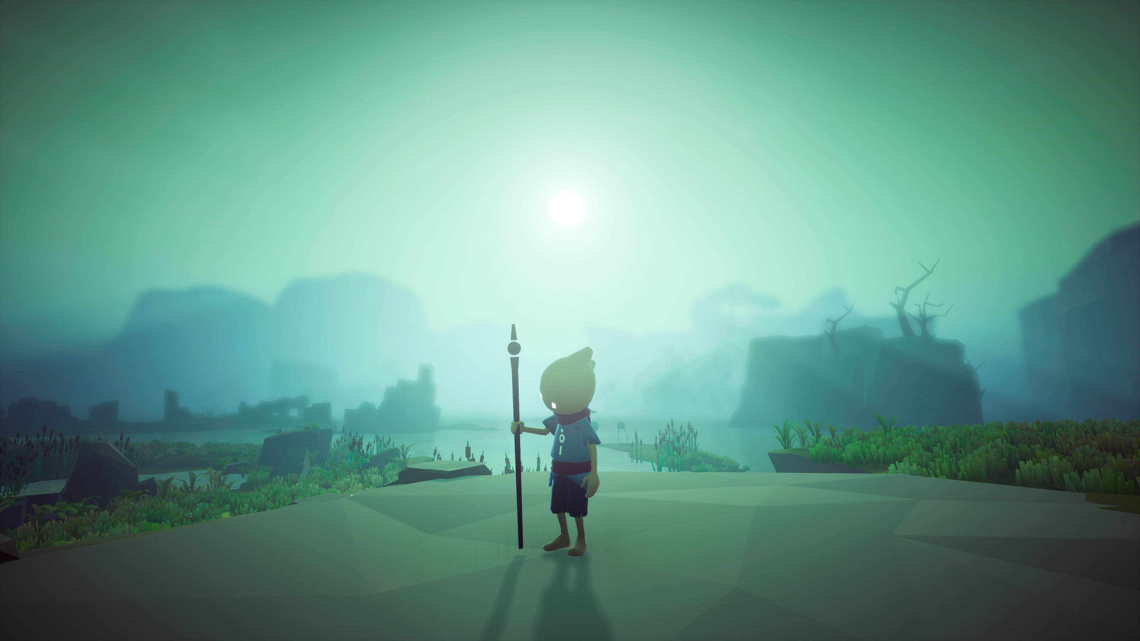 Comme nous l’avons vu, la direction artistique propose un style très épuré, voire enfantin, mais l’ambiance globale du jeu, ainsi que les environnements proposés, raviront tous ceux qui savent prendre le temps de la contemplation. Chaque biome propose une ambiance différente, avec de jolis éclairages et des couleurs caractérisant le paysage, accompagnée d’une musique douce et adaptative qui se marie parfaitement à l’univers sans violence du titre. Des moments plus lyriques lorsque l’on parcourt les paysages ou lorsque l’on approche de la solution d’une énigme offrent leurs lots de chœurs qui invitent à poursuivre dans l’aventure.