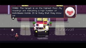 Les contrôles répondent parfaitement. Nous ne sommes jamais pris en défaut par une sensibilité du stick mal gérée. Le passage en mode tactique pour utiliser nos changements de direction se fait tout naturellement tandis que l’utilisation du gel est elle aussi très naturelle. Le changement de personnage à certains moments ajoute un peu de diversité dans les situations rencontrées. La bande-son colle bien au thème. Elle se laisse toutefois vite oublier, car moins marquante que celle d’un titre comme Katana Zéro, la référence du jeu de découpage indé. Il est difficile de reprocher quoi que ce soit au titre de Wired Games Studio tant ils ont soigné leur production.