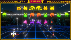 Manette en main, l’impression d’un Space Invaders sous amphétamines se confirme. Très nerveux, notre vaisseau extrêmement prompt à se déplacer, canarde à une cadence soutenue les envahisseurs qui explosent. Notre compteur de points aussi, ce dont se réjouiront les amateurs de scoring qui pourront au choix, viser le bronze, l’argent ou l’or dans chaque niveau.