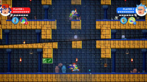 Dans la même veine que la structure plutôt classique des niveaux, qui comprend son lot de couloirs interminables, plateformes mouvantes, pièges et ennemis en tout genre, les 12 personnages sélectionnables – dont 4 d’entrée de jeu – s’inspirent des grands noms du divertissement : Robin des Noix, Queen Kong, Scientifique Imbibé ou Pensive, nul besoin d’un master pour capter les références, textuelles et visuelles.