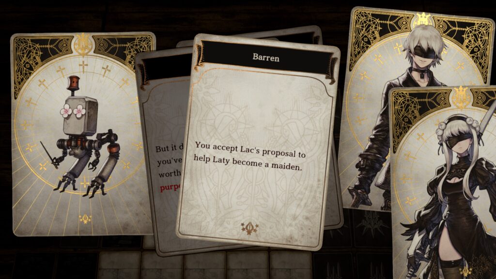Les joueurs pourront s’évader dans un monde illustré par des cartes dans ce deuxième opus de la série Voice of Cards, né des esprits créatifs à l’origine des célèbres franchises NieR® et Drakengard®, y compris le directeur créatif YOKO TARO (franchises NieR et Drakengard), le producteur exécutif Yosuke Saito (franchise NieR), le directeur musical Keiichi Okabe (Drakengard 3, franchise NieR), ainsi que le concepteur de personnages Kimihiko Fujisaka (franchise Drakengard).