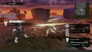Encore une fois, si ces conversations s’apparentent juste à du blabla inintéressant, tournez les talons, contentez-vous des longues conversations du scénario et partez simplement reprendre votre mission à travers le campus de Shin Mikado. Traversez les différents étages et bâtiments du campus afin de lever la brume en combattant les pactisants. La progression se fait par bâtiment et par étage, vous aurez toujours un combat important à chaque étage afin de briser l’Idéal d’un pactisant qui prend la forme d’un cristal. Puis au bout, un combat plus important contre le pactisant lui-même et son monark.