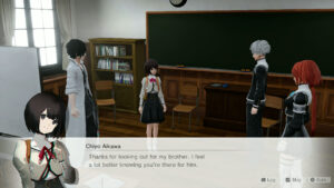 Avant de les exposer, il nous faut aussi exposer un autre défaut propre au genre. Nous devons mentionner le début de jeu assez long en posant les bases de l’histoire, des personnages et du gameplay. Heureusement, le jeu donne la liberté au joueur de suivre les discussions très annexes des personnages en écoutant ce qu’ils se disent tout simplement ou de ne pas en tenir compte en s’en allant. Des discussions de jeunes lycéens parlant d’amour ou de ce qu’ils aiment manger parmi bien d’autres sujets variés peuvent nous ramener à notre propre vécu. En s’identifiant, vous pourriez ressentir encore plus d’empathie et vous attacher un peu plus à ce petit groupe de personnages.