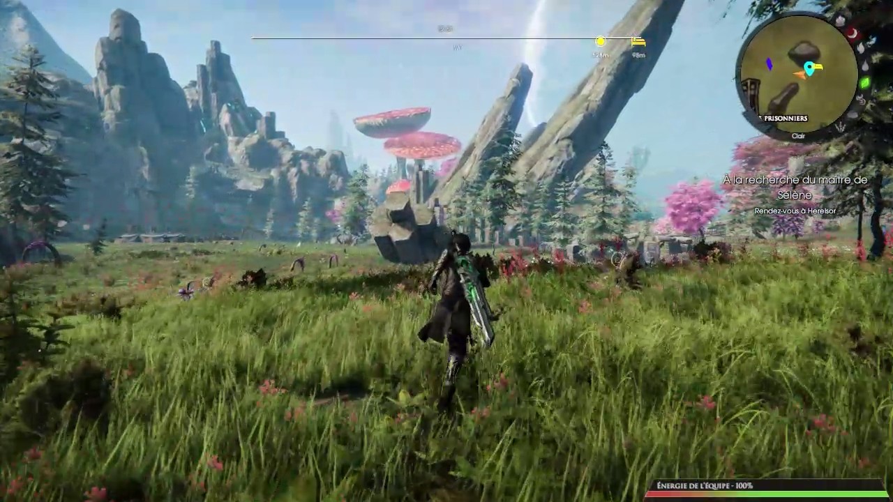 Notre aventure se déroule dans un vaste monde fait de zones, plus ou moins grandes, interconnectées. Beaucoup de téléporteurs jonchent ces lieux et il est facile et agréable, en tout cas sur Pc, de découvrir ces vastes panoramas qui n’attendent que nous. La direction artistique est irréprochable et les environnements se renouvellent très souvent. Un cycle jour/nuit vient en plus d’effets météo. Loin d’être négligeables, ces effets auront de plus un rôle dans le déroulement des combats.