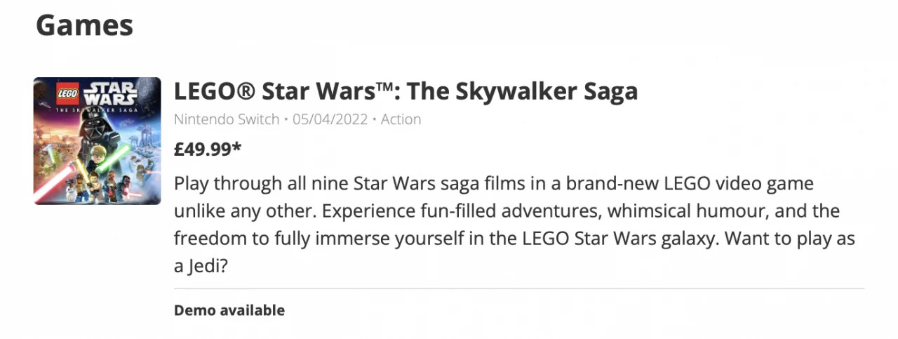Alors qu’il sort aujourd’hui sur Nintendo Switch, notre test est en cours, mais bon Tyrannus prend encore son temps, LEGO Star Wars: The Skywalker Saga aura-t-il droit à une démo sur l’eShop ?