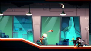 Nous pourrons en outre compter sur l’appui de 3 autres personnages, disponibles au terme de savoureuses pirouettes scénaristiques. Petit régal en soi, le jeu ravira aussi bien les fondus de Metal Slug qui devraient goûter son gameplay bourrin, que les férus de Metroidvania raffolant de niveaux interconnectés, à l’architecture modulable selon nos capacités.