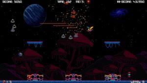 Lorsque les vaisseaux sont remplis d’aliens multicolore, il est temps de rejoindre votre vaisseau en allant dans l’espace. Lors de la phase pour rejoindre votre vaisseau il faudra détruire, récupérer et éviter différents éléments pour obtenir vos points bien mérités. C’est ici aussi qu’on peut trouver des points secrets en réussissant un défi qui n’est pas expliqué, mais qui vous donnera un minimum de 30000 points et pour trouver ces secrets il faudra aller sur le site Galacticon.