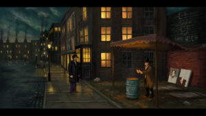 Terminons-en évoquant la bande son et les graphismes. Les amateurs de point’n’click à l’ancienne seront aux anges. La patte graphique est l’un des points forts de ce titre déjà fort agréable à prendre en main. Avec ses tableaux détaillés et ses personnages en pixel art, nous vivons une aventure toujours étonnante dans cette ville où se côtoient les bas-fonds lugubres et les bâtiments de haut standing. La bande son de Mark Benis est un modèle du genre. Les airs de piano, accompagnés souvent du reste de l’orchestre, s’enchaînent pour imposer une ambiance allant du sombre au macabre, mais toujours parfaitement adaptée à la situation, il est d’ailleurs possible de s’en faire une idée sur les plateformes de streaming légales.