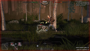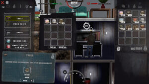 Lorsque vous êtes seul chez vous, vous aurez la possibilité de construire votre bunker sous votre maison. Avec votre atelier clandestin, vous pourrez construire toutes sortes d’objets qui vous seront bien utiles. Mais pour construire, il faut des ressources, évidemment. Vous pourrez les récupérer en démontant des objets de votre maison ou en allant les chercher ailleurs. Une petite balade en forêt vous permettra de récupérer du bois, par exemple. Mais vos balades ne pourront pas durer éternellement, car votre personnage doit bien se nourrir et dormir sous peine de s’évanouir et se réveiller plusieurs heures plus tard en vous faisant perdre un temps précieux. Pour éviter l’évanouissement, vous devrez garder un œil sur les jauges de santé/faim et de sommeil. Pour remplir ces jauges, il suffira, vous vous en doutez, de manger ou de dormir.