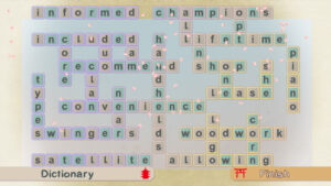Le jeu se décompose en 4 modes. Pour commencer, vous devrez vous frotter à un petit tutoriel en 6 actes, dont la difficulté va crescendo (On vous rassure, rien de bien compliqué), histoire de bien comprendre les mécaniques de jeu. Vient ensuite le mode Single Game qui vous permettra d’enchaîner les grilles selon les options que vous aurez définies. Puis un mode Dailies (Défi journalier) qui vous proposera une grille différente chaque jour (un peu comme le mode Single en fait) et enfin un mode Trophy Poems qui vous permettra « d’écrire » des jolis poèmes, grâce aux mots que vous remporterez dans les modes Solo (Single Game) et Dailies (Défi journalier).