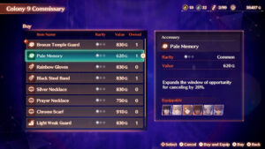 Et même ces quêtes secondaires vous demanderont de rassembler des informations et rumeurs liées à la problématique en question sur les différentes colonies. Une fois vos informations réunies, vous pouvez lancer une discussion à propos de ces dires qui peuvent résulter en une quête annexe à faire. On ne va pas mentir sur le fait que si l’intention était louable, une bonne partie de ce blabla très secondaire nous dépasse et l’on ne fait qu’appuyer machinalement sur A ou passer complètement la discussion juste pour obtenir et faire la quête. Une fois le briefing terminé, prenez le temps de forger vos gemmes comme dans le premier Xenoblade afin de les équiper sur vos protagonistes et bénéficier de nombreux effets passifs importants en combat.