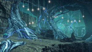 Cela vous amène ainsi à certains moments du jeu à revenir en arrière sans que l’histoire vous y oblige, pour explorer des zones et découvrir de belles choses. Ainsi, bien que délimités, les décors et chaque région étaient suffisamment grands pour ne pas nous faire se sentir à l’étroit avec une verticalité bien plus prononcée que dans les précédents opus numérotés inspirés de Xenoblade X. La superficie totale avoisine même très certainement le monde de Xenoblade X faisant certainement de Xenoblade Chronicles 3, le jeu numéroté avec le monde le plus grand. De plus, l’inspiration des développeurs nous motive toujours à vouloir aller à gauche à droite pour explorer le tout au maximum. Remplir les annexes ou trouver des Ruines de Feronis à sécuriser, utiliser de l’éther pour les réactiver, installer un campement puis profiter du distributeur pour récupérer des matériaux ou objets contre de l’argent.