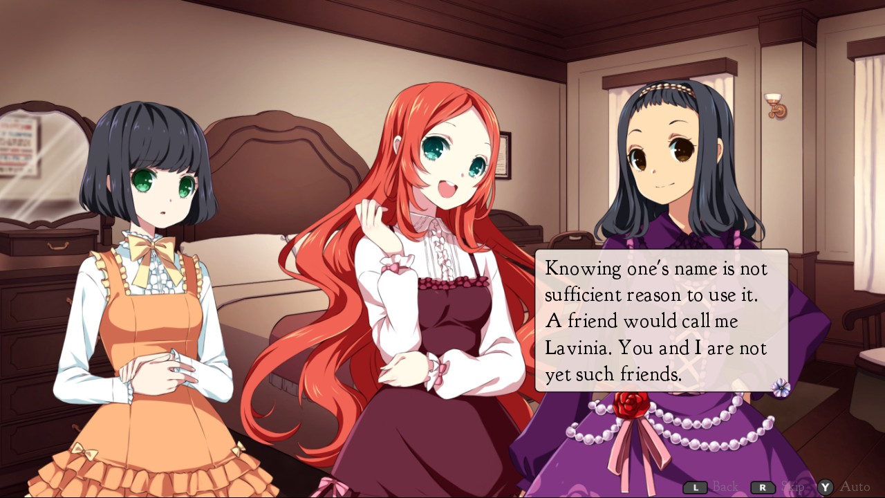 Cela étant dit et comme nous avons pu le mentionner, le jeu ne possède pas de vraie fin selon la route choisie. Cela signifie donc que vous pouvez justement choisir n’importe quelle route, dans l’ordre que vous le souhaitez. Mais si jamais vous ne savez pas trop par où commencer, voici les routes que nous avons suivies, dans l’ordre : Mariette, Lavinia, Jessie, Ermengarde, Lottie, et enfin, pour des raisons évidentes, Becky.