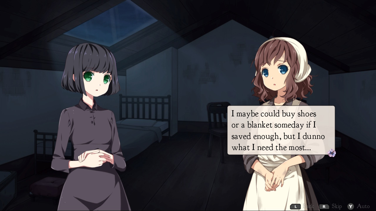 Riche de sa bande-son de qualité et de ses excellents graphismes, A Little Lily Princess est un Visual Novel Yuri qui saura vous attendrir en vous présentant une histoire d’un peu moins de quinze heures pour en voir les six fins. En incarnant la jeune Sara Crewe, vous pourrez assister aux premières loges à son voyage à Londres et son évolution de jeune fille riche ignorante à servante ne possédant absolument plus rien. Ce récit d’aspect générique, traité avec respect, verra Sara former des relations plus ou moins sincères et confronter ses difficultés avec une détermination qui saura en motiver plus d’un. Cependant, un manque de doublage et une traduction française inexistante pourraient également en rebuter certains. Mais si vous êtes en quête d’un Visual Novel mignon et exprimé dans un anglais simple pour passer un bon petit moment de lecture, alors nous ne saurions que vous le recommander. Bon voyage Londonien à vous !