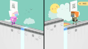 Chaque petite histoire est bien mignonne, mais elle tient en trois lignes et n’a aucun rapport avec celle qui la précède. Le titre ne comprenant que 12 morceaux, nous allons très vite faire le tour de ces saynètes sans jamais nous attacher à aucun des personnages qui les composent. De plus leur chara design, sous forme de paper toys cubiques, ne laisse pas non plus vraiment de place à une quelconque affection.