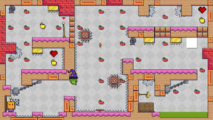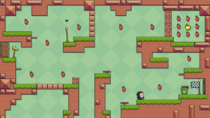 Cette narration se fait sous forme de petites saynètes employant le moteur du jeu, rien de bien extraordinaire d’autant plus que le chara-design semble sortir tout droit d’une bibliothèque Game Maker et manque cruellement d’homogénéité. Dans le même tableau, nous pouvons rencontrer à la fois un radis géant, un perroquet et une boule de slime. Le reste des décors est dans la même veine et les 120 niveaux qui s’offrent à nous offre trop peu de variations et manquent, eux aussi, de personnalité.