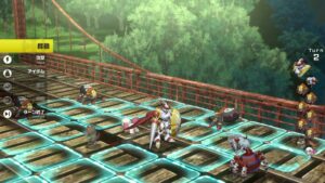 Vous pouvez recruter les Kemonogami que vous croiserez en combat libre ; à l’instar d’un Shin Megami Tensei, vous allez devoir lui parler, s’en suivent 3 questions de sa part qui auront 4 choix possibles. La réponse peut lui plaire ce qui augmentera une jauge de 2 points, le contenter 1 point, et sinon vous perdrez 2 points. Ce n’est pas toujours évident de deviner, mais surtout le nombre de questions, comme tout le reste du jeu, est très très faible, comme le reste nous dirions qu’il y en a une dizaine de disponibles et toujours avec les mêmes réponses (mais qui n’auront pas toujours le même contentement). Cerise sur le gâteau, le jeu ne vous incite vraiment pas à recruter des monstres. Vous pouvez en placer en général 6 par combat, et vous allez donc utiliser uniquement les « starters » de votre équipe. Ils peuvent parler 1x par combat, ce qui va augmenter les stats d’un autre Kemonogami. Cette action est en plus de ses actions de base, donc c’est un avantage non négligeable (Falcomon, par exemple, augmente la distance de déplacement d’un Kemonogami). Donc en dehors du plaisir de collectionner, ce n’est pas très intéressant, surtout que les Kemonogami de vos compagnons sont souvent imposés dans les combats d’histoire. Il ne faut pas négliger leurs entraînements, à la limite augmenter 2 ou 3 Kemonogami libres peut être utile, ils ont l’avantage qu’une fois évolués, ils le restent.