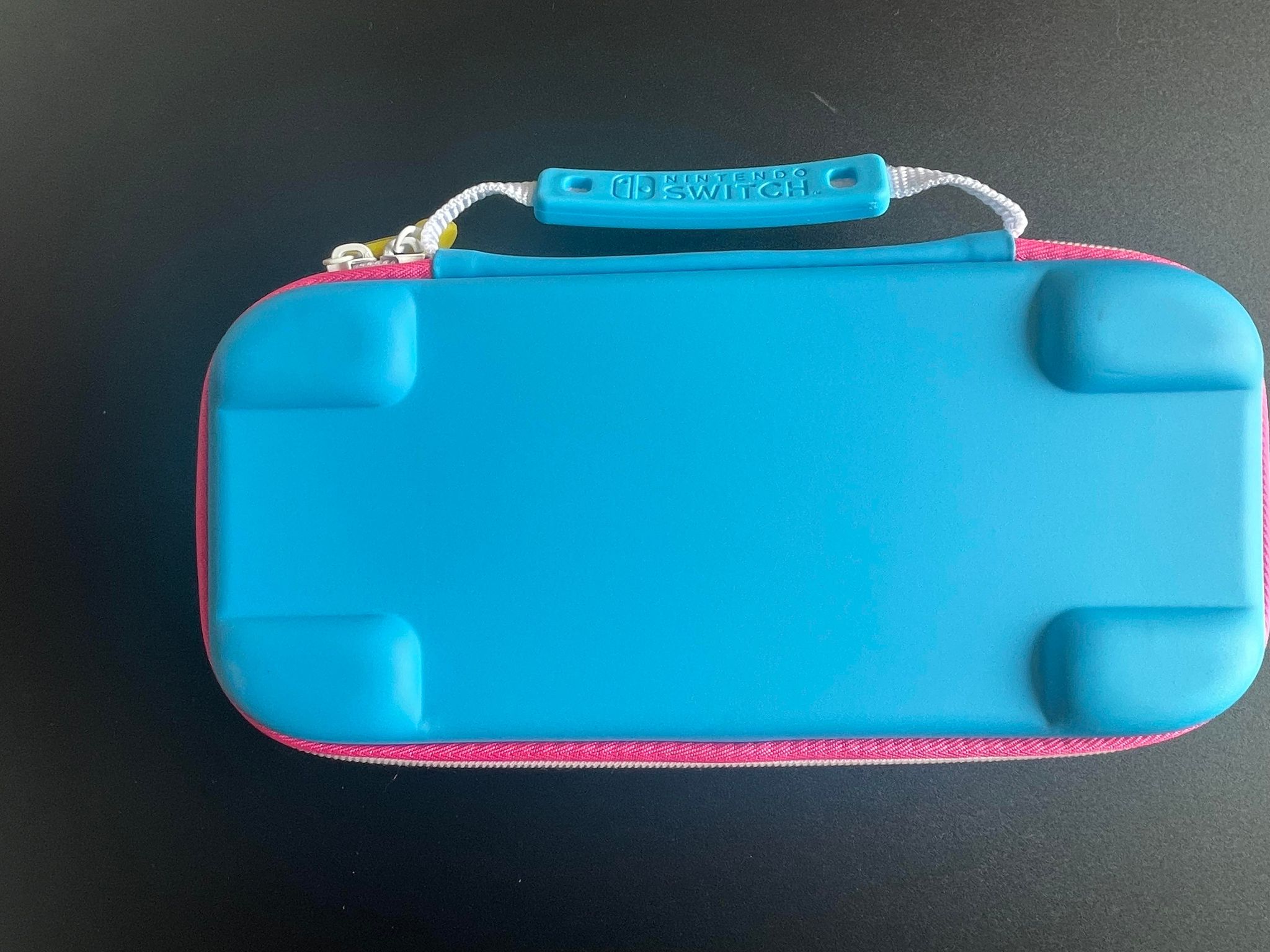 À l’intérieur, vous trouverez une doublure en feutre, un rabat de protection d’écran avec un espace de rangement pour huit cartouches de jeu, ainsi qu’un filet de rangement à fermeture éclair. Comme vous le constaterez sur les photos, un petit socle est fourni afin d’assurer la meilleure protection possible pour la Nintendo Switch Lite. À l’instar des autres pochettes du marché, la coque, solidement renforcée à l’extérieur, se montre de plus particulièrement pratique grâce à sa petite poignée. La pochette idéale, donc, pour une petite virée avec tout le matos nécessaire !