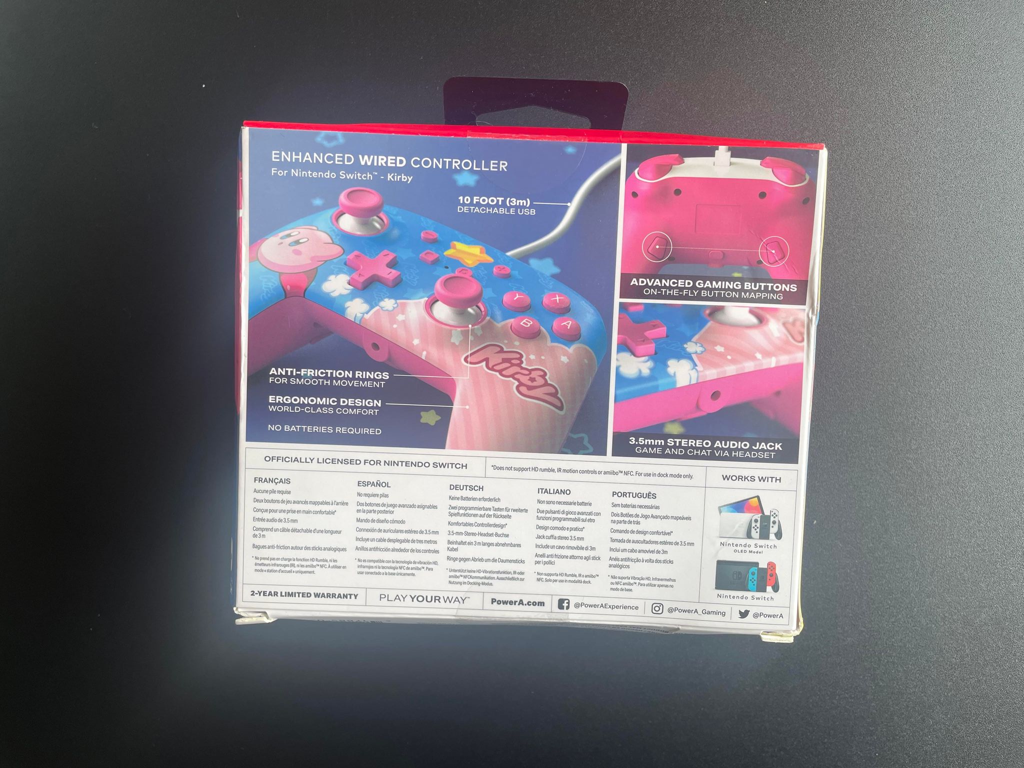 Nintendo propose une manette Switch Pro sous licence officielle au prix de 69,99€, ce qui peut représenter un investissement coûteux si vous ne jouez pas si souvent. Mais il existe de nombreuses manettes tierces, comme la manette Enhanced Wired Controller for Nintendo Switch – Kirby, qui est franchement trop mignonne.