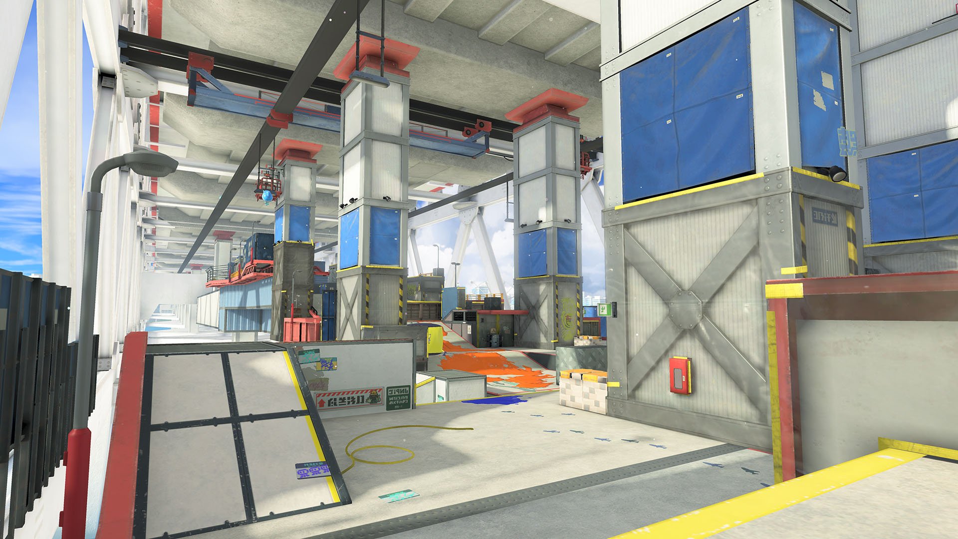 Nous lançons notre session et tombons directement sur la nouvelle ville faisant office de HUB central de ce troisième jeu. Une ville drôle par son nom, comme Nintendo sait si bien le faire, en termes de jeu de mot. Puis une ville avec de nombreux éléments que nous ne pourrons guère développer aujourd’hui, mais dont vous devinez les possibilités si vous avez déjà joué aux précédents jeux de la série. Nos hôtes nous emmènent directement au Clamarcade, un lieu qui vous permet de vous entraîner librement dans un petit espace. L’occasion pour nous de retrouver nos repères et nos touches avant de passer aux choses sérieuses. Nos hôtes nous ont brièvement donné l’occasion de faire un peu de solo en guise de tutoriel également, bien que nous ne pourrons pas en dire beaucoup plus.
