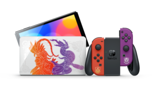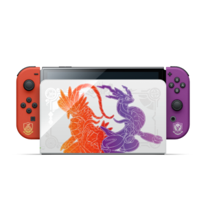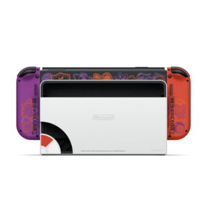 Le 4 novembre, la nouvelle console Nintendo Switch™ – Modèle OLED Édition Pokémon™ Écarlate & Violet sera disponible en magasin. Son design évoque l’univers des futurs jeux Pokémon Écarlate et Pokémon Violet. Sur l’avant de la station d’accueil, dont le rendu est blanc brillant, figurent les Pokémon légendaires Koraidon et Miraidon ; sur l’arrière figure une illustration inspirée de l’emblématique Poké Ball. Sur le dos de la console apparaissent les trois Pokémon de départ du jeu : Poussacha, Chochodile et Coiffeton. Les Joy-Con écarlates et violets sont ornés des emblèmes de l’Académie Orange et de l’Académie Raisin.
