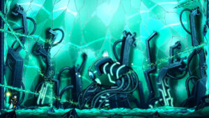 Aeterna Noctis est un jeu 2D de type Metroidvania. Ce terme est une contraction du nom de deux jeux : Metroid et Castlevania. Un Metroidvania est donc un mélange d’action-aventure et de plate-forme qui demande au joueur d’explorer des zones connectées entre elles dont certaines zones ne sont pas accessibles tant que le joueur n’a pas débloqué la capacité nécessaire. Ce genre de jeu vous demande donc de visiter chaque zone plusieurs fois à différents moments du jeu pour découvrir de nouveaux lieux et trouver de nouveaux objets. Aeterna Noctis vous demandera d’explorer seize zones.