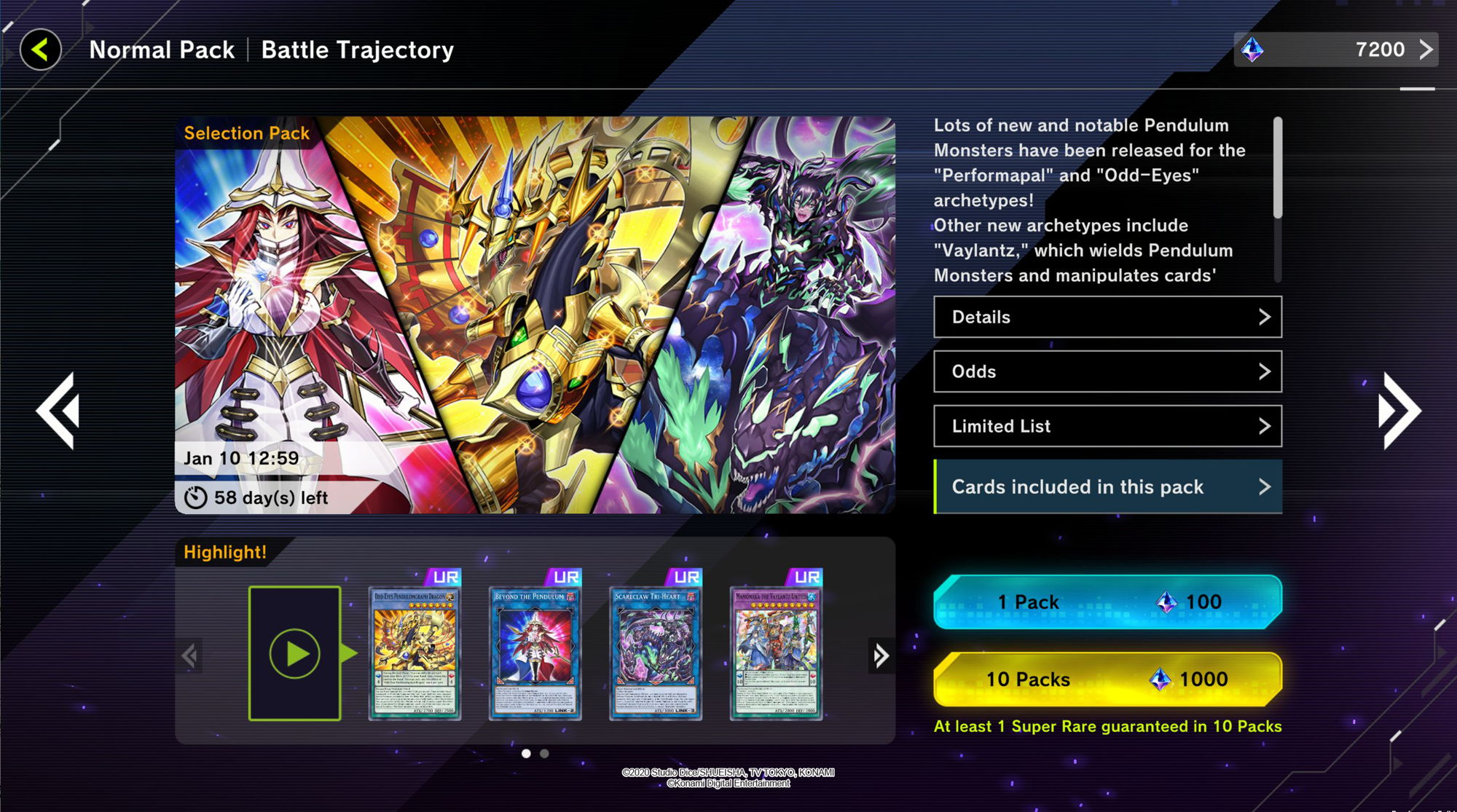 Afin de préparer leurs Decks à ce nouveau mode, les joueurs peuvent dès à présent acquérir les cartes du nouveau Pack de Sélection « Battle Trajectory ». Il comprend de nombreux Monstres Pendule pour les archétypes « Potartiste » et « Yeux Impairs ». Ce nouveau Pack introduit également la stratégie « Vaylantz », centrée sur la manipulation de la position des cartes de l’adversaire.