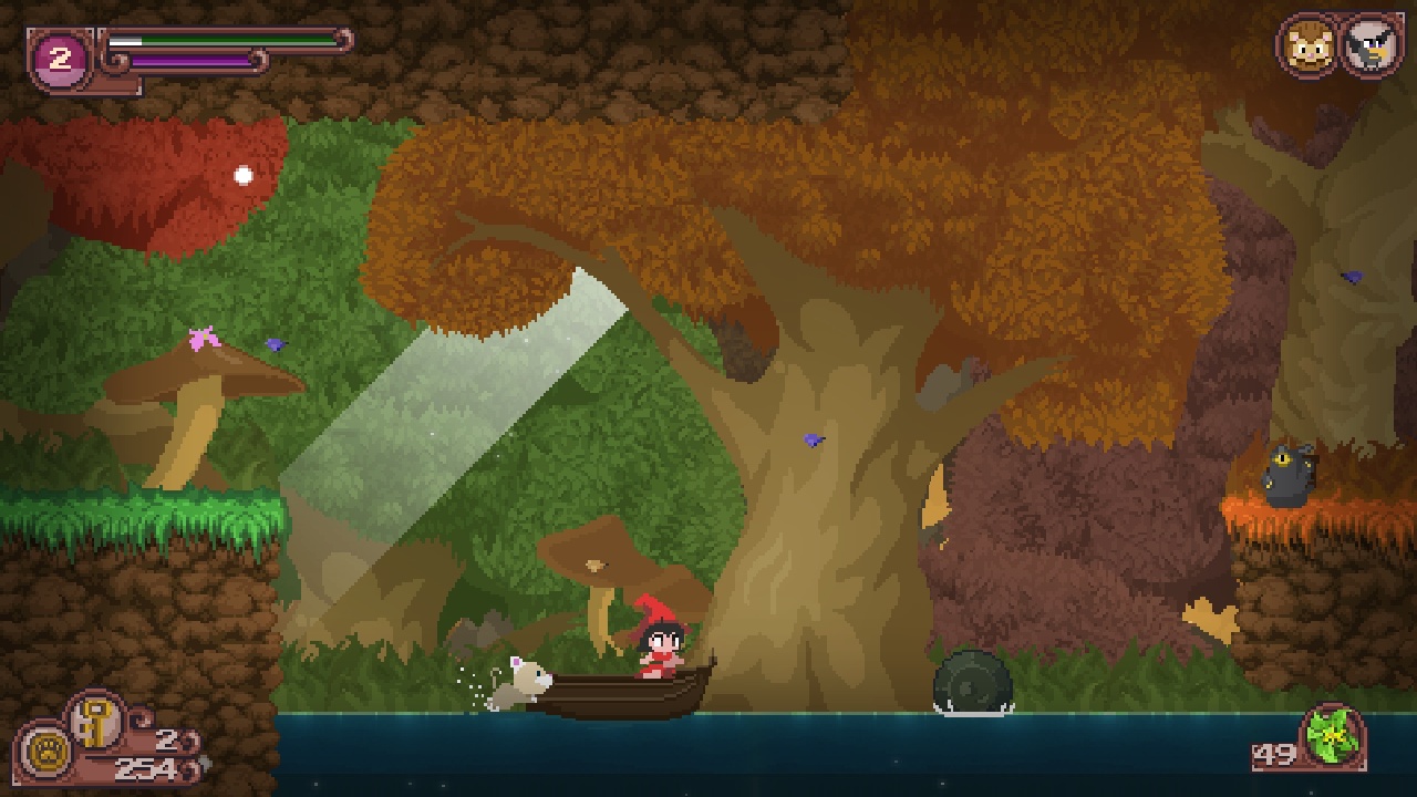 La présence d’un carnet de bord permet ainsi de se rappeler de quelques points majeurs de l’histoire, écrit sous la plume mignonne de Alesta et nous montrant son ressenti, ce qui est un petit point sympathique. Une section dédiée aux différents personnages et à leurs caractéristiques, à leur mythe originel peut-être, ou encore un bestiaire avec des descriptions comme dans d’autres metroidvania, aurait permis aux plus curieux de s’y pencher avec un peu plus de précision, et sans passer de longs moments d’exploration entre chaque élément clé de l’histoire.