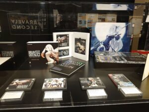 Celle que nous avons eu en occident. En 2015, Bravely Archive: D’s Report arrive sur Smartphone suivi par Bravely Second: End Layer sur Nintendo 3DS. En 2017, Bravely Default: Fairy’s Effect temporise sur Smartphone avant que Bravely Default II débarque enfin sur Nintendo Switch en 2022. Celui-ci est suivi par le jeu smartphone Bravely Default: Brilliant Lights. L’expo nous permettait également d’avoir sous nos yeux les éditions collector des jeux 3DS. Des collector de qualité, souvent bien fourni malgré le tarif conséquent de ces éditions.
