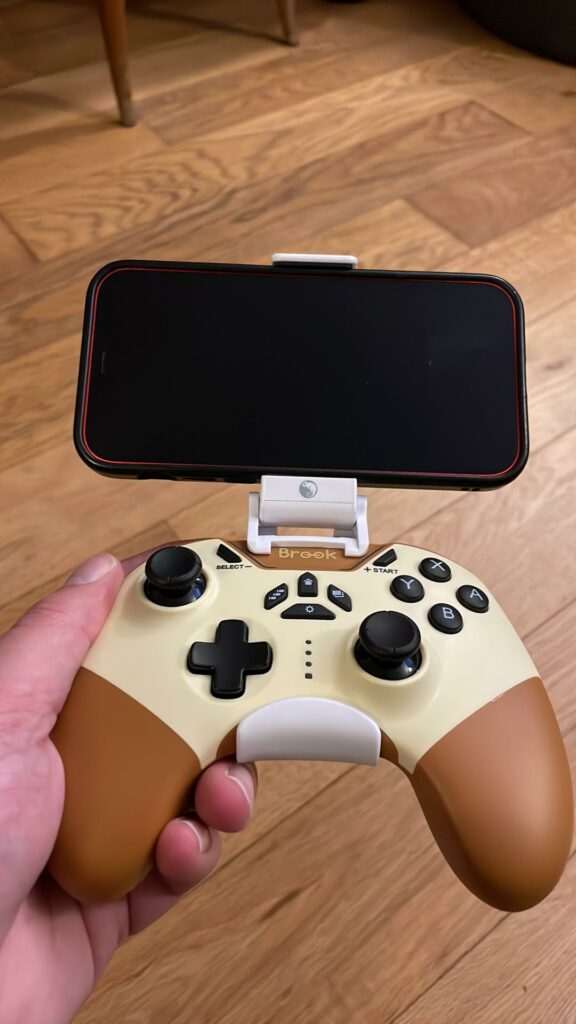 Une autre surprise intéressante est un support de téléphone qui se fixe directement sur la manette et vous permet de jouer à des jeux mobiles avec votre téléphone connecté via Bluetooth sur un smartphone Apple ou Android. La manette est aussi compatible sur PC via Windows, ce qui la rend plutôt utile en mode couteau suisse. La connexion Bluetooth est fluide et simple, peu importe l’appareil. J’ai tenté de la connecter sur une Xbox Series X sans succès, comme souvent avec les consoles New Gen qui sélectionnent leurs périphériques. J’ai aussi voulu la tester sur une PS5, mais je me suis rappelé que j’avais une race et que, non, je n’avais pas acheté cette immondice. Désolé.