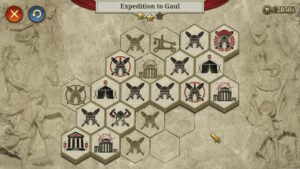 Cette monnaie est peut-être ingénieuse pour pousser le joueur free-to-play à consommer, elle est très mal pensée pour un jeu payant. Vercingétorix, qui est un général « haut-de-gamme », coûte 885 pièces. Or, nous ne gagnons que 120 pièces par campagne. Pire encore, le mode conquête, qui devrait récompenser le joueur de son investissement, nous a rapporté 75 pièces pour 184 tours de jeu.