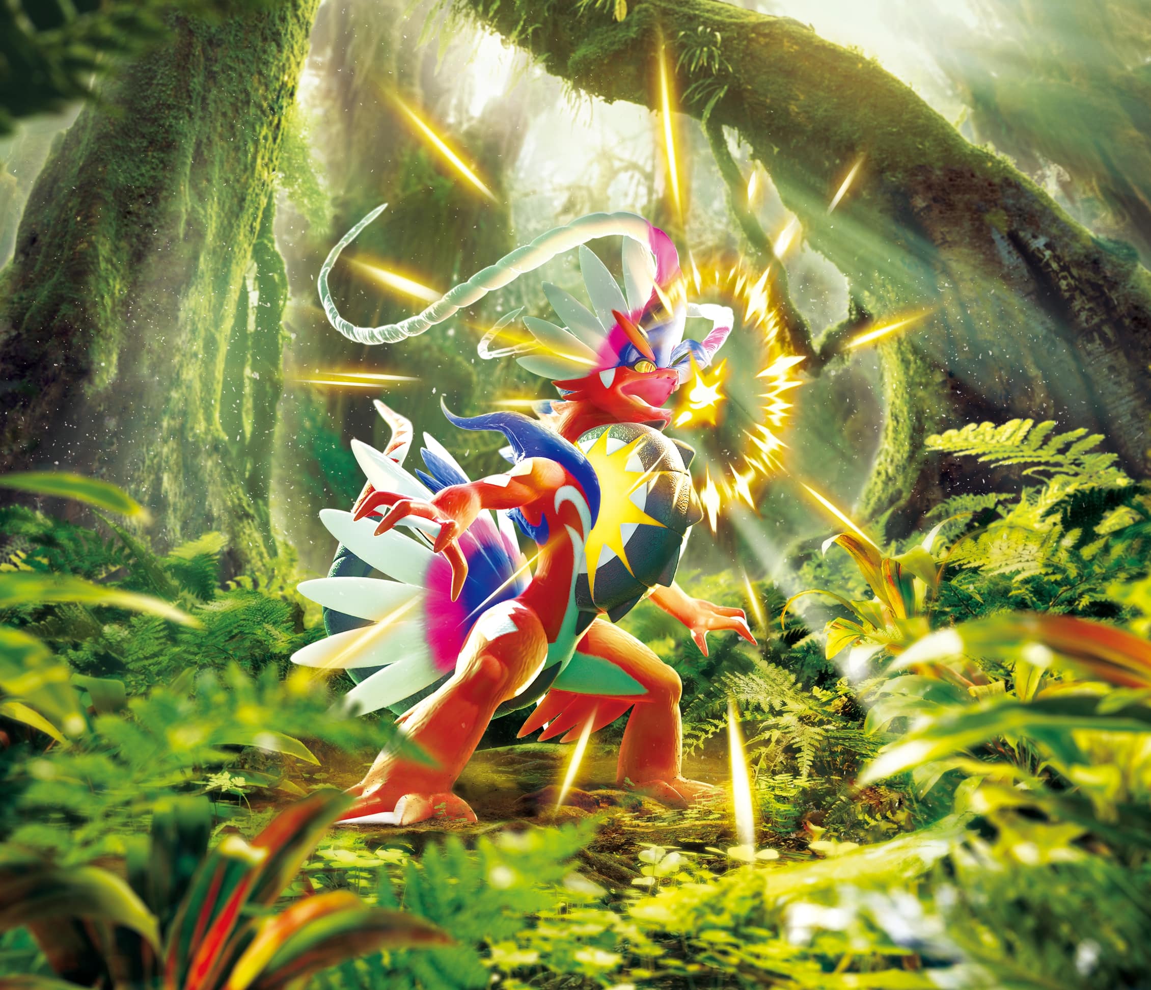 Cette première extension de la série Écarlate et Violet, dévoilée lors des Championnats du Monde Pokémon 2022, marque le retour de la mécanique de jeu des Pokémon-ex. Les Pokémon-ex apparaîtront à tous les niveaux d’Évolution et auront des PV élevés, ainsi que des attaques et des talents puissants. Cependant, lorsqu’un Pokémon-ex est mis K.O., il offre deux cartes Récompense au lieu d’une.