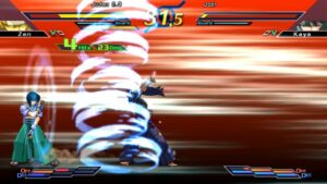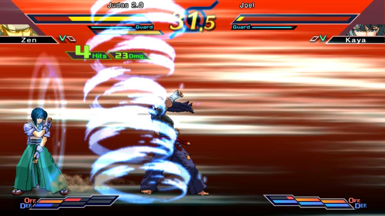Si la partie rouge monte vite, il est toutefois plus difficile d’accumuler de l’énergie dans la partie bleue, puisque se protéger finit par nous mettre dans une dangereuse position de vulnérabilité une fois la jauge de garde épuisée (affichée sous la barre de vie). Il est donc nécessaire de savoir gérer ses barres et utiliser les différents mécanismes du jeu à bon escient pour gagner.