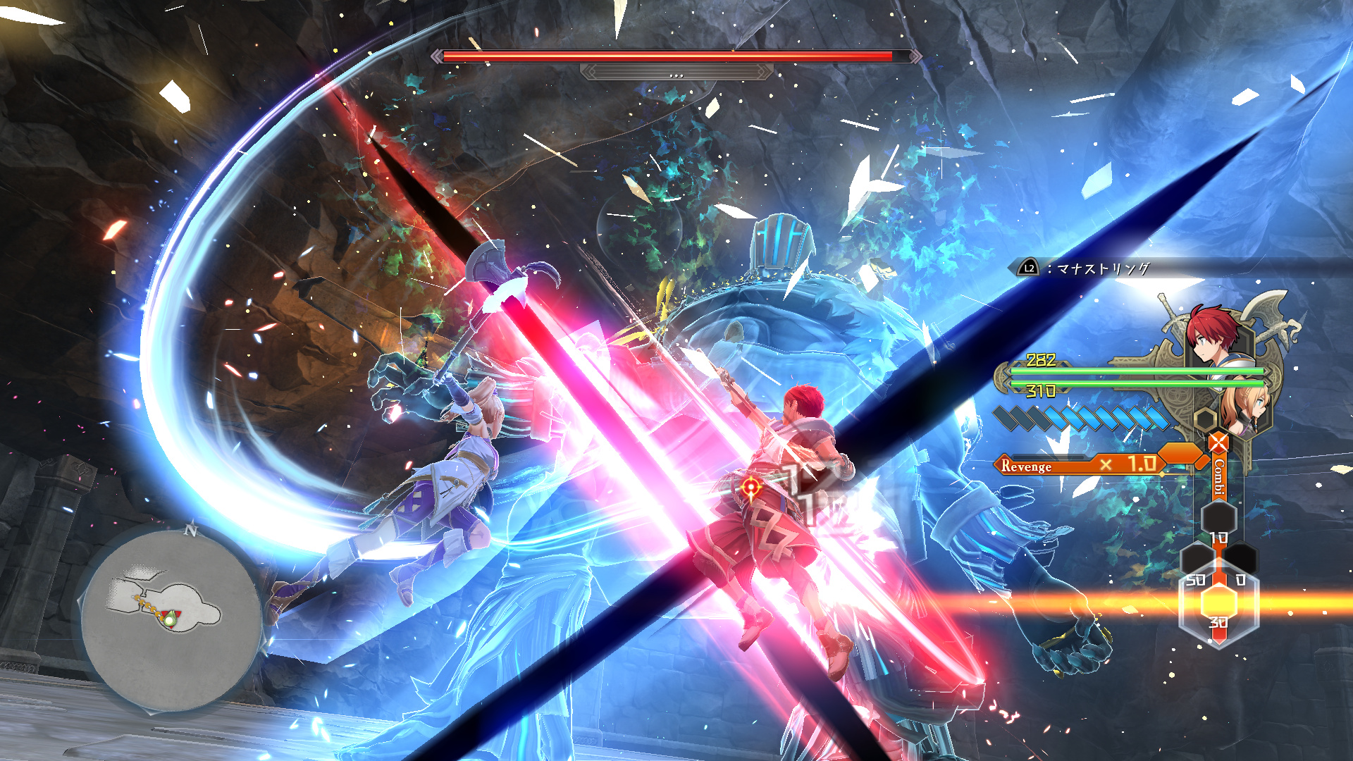 Le système de combat utilisé jusqu’à Ys IX : Monstrum Nox a été radicalement remanié ! Le nouveau système « Cross Action » permet au joueur de combattre en utilisant deux modes selon la situation. Dans le rapide « Mode Solo », le joueur contrôle un personnage avec l’aide des attaques automatiques et du soutien de son partenaire. En « Mode Combinaison », le joueur peut contrôler simultanément une série d’actions pour les deux personnages afin d’affronter des ennemis redoutables dans des combats en aller-retour.