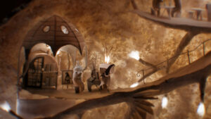Comme évoqué en introduction, Papetura a été entièrement réalisé en papier. Concrètement, le développeur a créé tous les modèles sur ordinateur pour en créer des patrons qu’il a ensuite imprimé. Le tout a été découpé, tordu et collé avec amour durant de longues années. Chaque scène a ensuite été photographiée et numérisée afin de pouvoir créer les décors, personnages et animations. Le résultat est tout bonnement stupéfiant. On ne peut rester de marbre devant ce rendu unique et cet univers poétique.