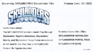 Les compilations contiendraient Skylanders : Spyro’s Adventure (2011), Skylanders: Giants (2012) Skylanders: Swap Force (2013).