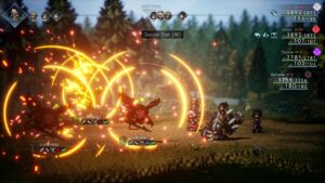 Une fois le compteur à zéro, la garde de l’ennemi est totalement brisée, son action à venir est annulée puis celui-ci ne pourra pas agir durant son prochain tour. Totalement à notre merci, c’est à ce moment qu’il faut sortir nos meilleures attaques et en finir au plus vite. Pour assister vos offensives, la mécanique de “Boost” sera votre atout. Chaque tour, chacun de nos personnages gagnent 1 PE (Point d’exaltation), chacun peut accumuler jusqu’à 5 PE et il est possible d’utiliser 3 PE maximum en un tour. L’exaltation augmente le nombre d’attaques que nous effectuons et/ou booste les effets de vos aptitudes. Plus nous utilisons de PE en une fois, plus le boost sera conséquent.