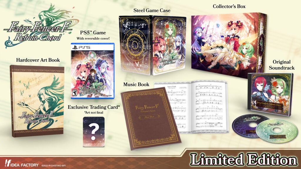 Sorti en Septembre dernier sans faire plus de bruit que ça au Japon, Idea Factory International lance la campagne promotionnelle pour Fairy Fencer F: Refrain Chord à venir sur différentes plate-formes dont la Nintendo Switch. L’occasion pour l’éditeur d’annoncer une édition limité bien fournie et dévoilé l’introduction du jeu avec une date de sortie fixé au 25 Avril dans le reste du monde. Fairy Fencer F: Refrain Chord est un nouvel opus de la saga Fairy Fencer F optant pour un gameplay inspiré du Tactical RPG. Nous vous laissons retrouver cela ci-dessous en rappelant pour les éventuels intéressés que la localisation sera sous titré en anglais.