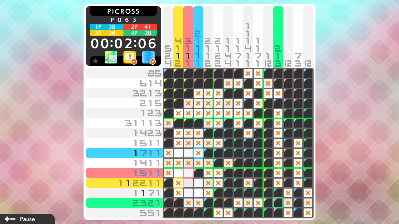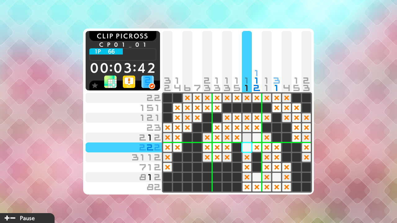 - Il y a 300 puzzles Picross et Mega Picross, 150 puzzles de pièces Clip Picross, 30 puzzles Color Picross et 5 puzzles Extra, soit un total de 485 puzzles !